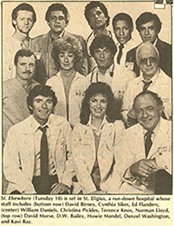Tele-Visions: The Fall TV PreviewExcerpt: St. Elsewhere is an ensemble drama set in a Boston hospital from Hill Street Blues producers MTM. Of the cast of 12, the most well known are William Daniels (also the voice of car computer KITT in Knight Rider) and David Birney, though Terence Knox is sure to win early attention as the handsome Dr. White. |
